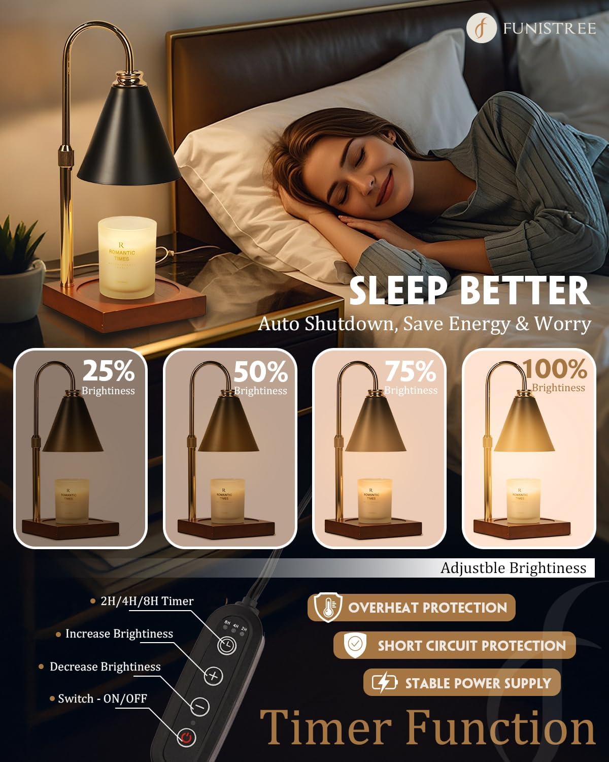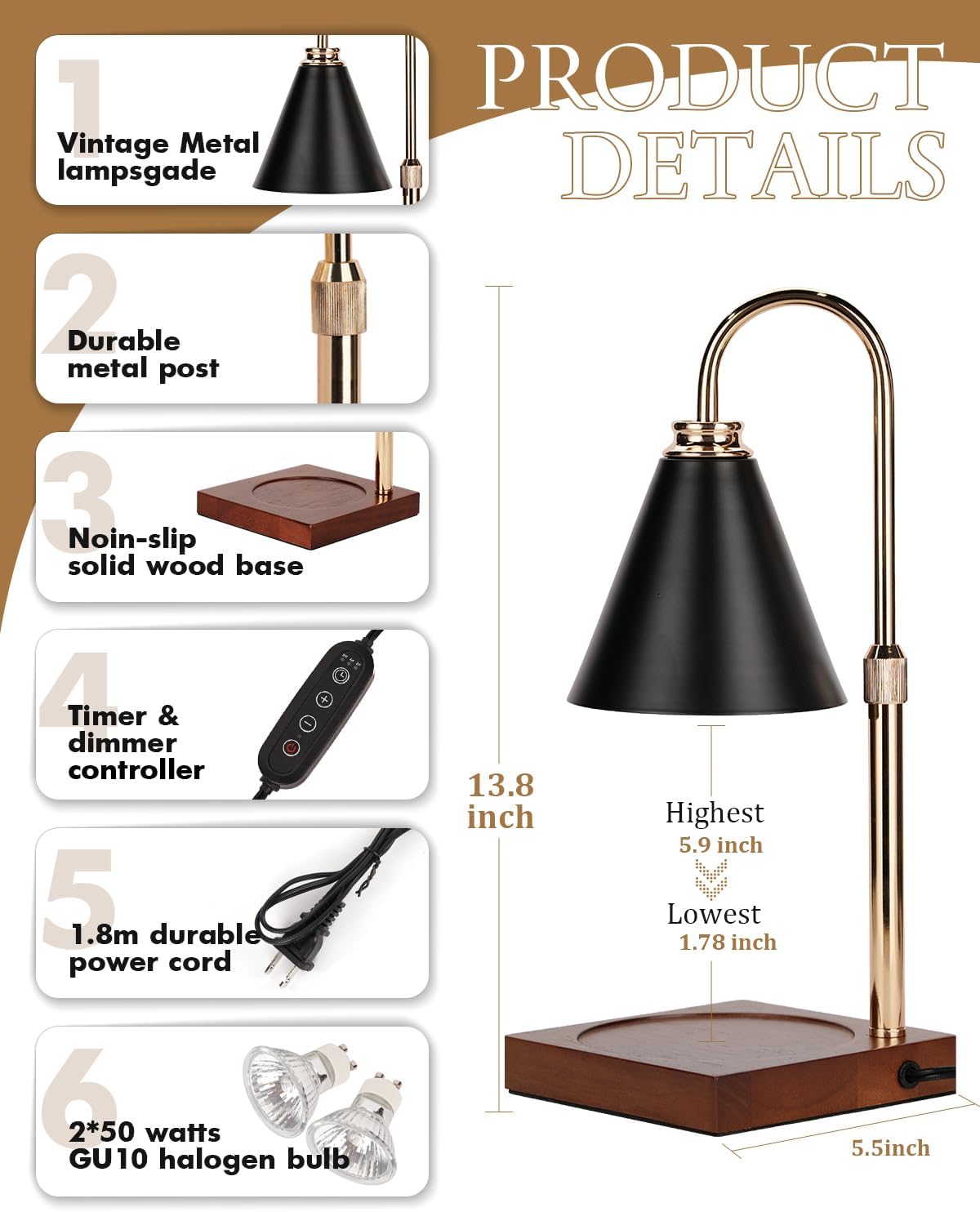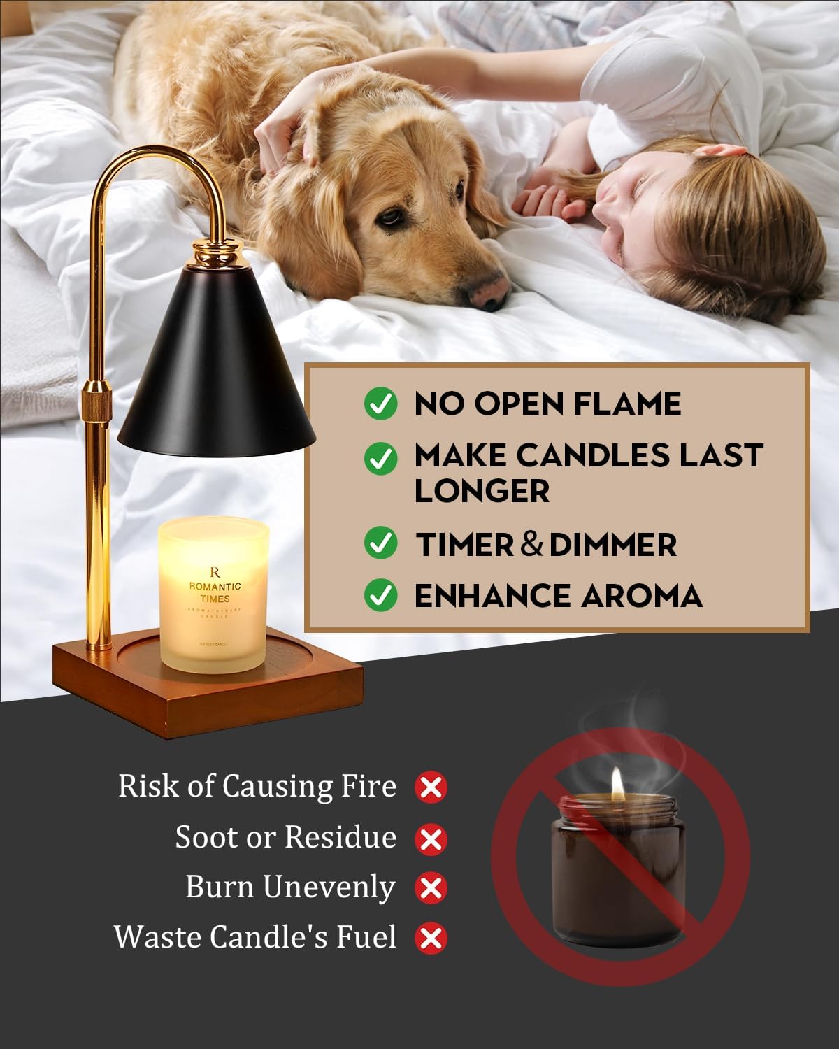 - Safe heating: This candle warmer lamp with timer uses 2 included 50W bulbs to melt wax without burning candles, no smoke or soot—keeping your air clean and your home safe. Set the convenient 2/4/8-hour timer for worry-free operation, eliminating the danger of forgotten candles. A truly carefree way to enjoy your favorite fragrances